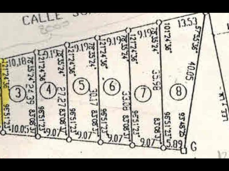 * Lote 8: 13 metros de frente por 5 metros de contrafrente, por 40 metros de fondo (Terreno irregularde 400 metros cuadrados aproximadamente).