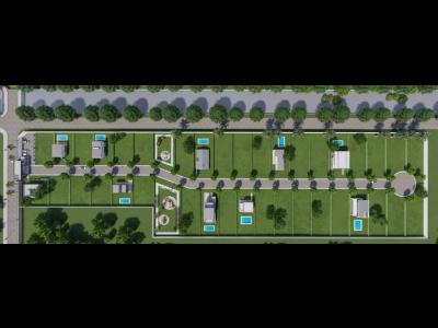 Distribución: Predio cerrado de 2,1 hectáreas, con acceso único controlado. Consta de 38 lotes de los cuales 1 posee casa construida, forestación y aéreas comunes.