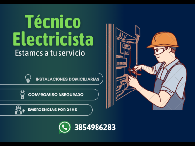 Servicio técnico electricista.Servicio de instalaciones eléctricas, comerciales y domiciliarias.Compromiso asegurado. Emergencias 24hs. cel 3854986283