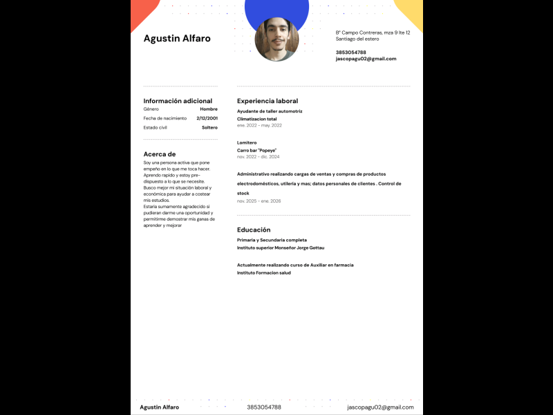 Hola, busco trabajo dejo mi numero de contacto y mi currículum. Gracias3853054788
