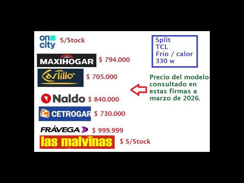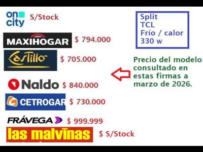 TCL frío-calor. 3300 w. Nuevo, en su embalaje original. $685.000. Ni canje ni permutas, vuelteros abstenerse.